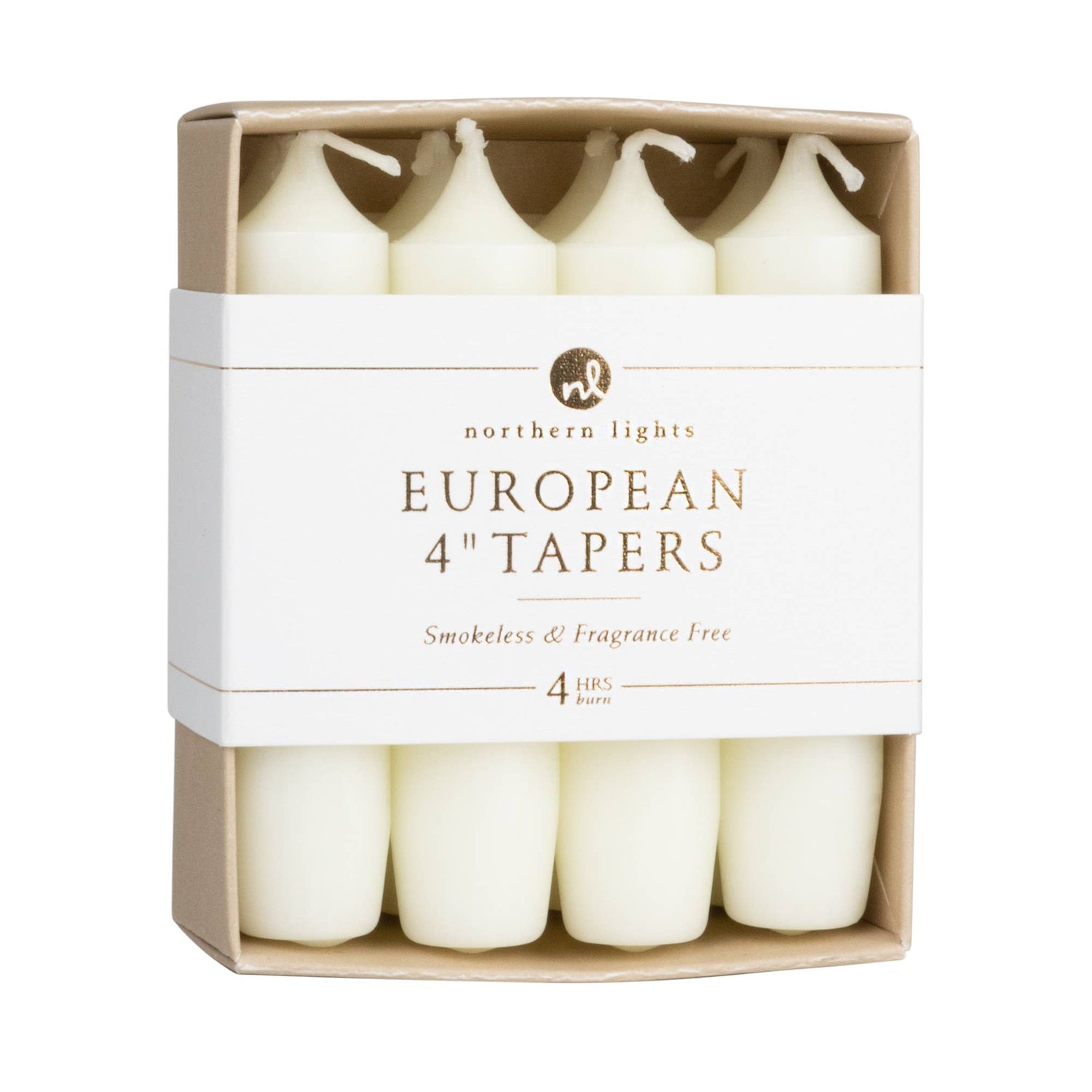 Each Taper burns 1 inch per hour. Smokeless and dripless, fragrance-free and fits all standard taper holders. This new 8pk features plastic free packaging!