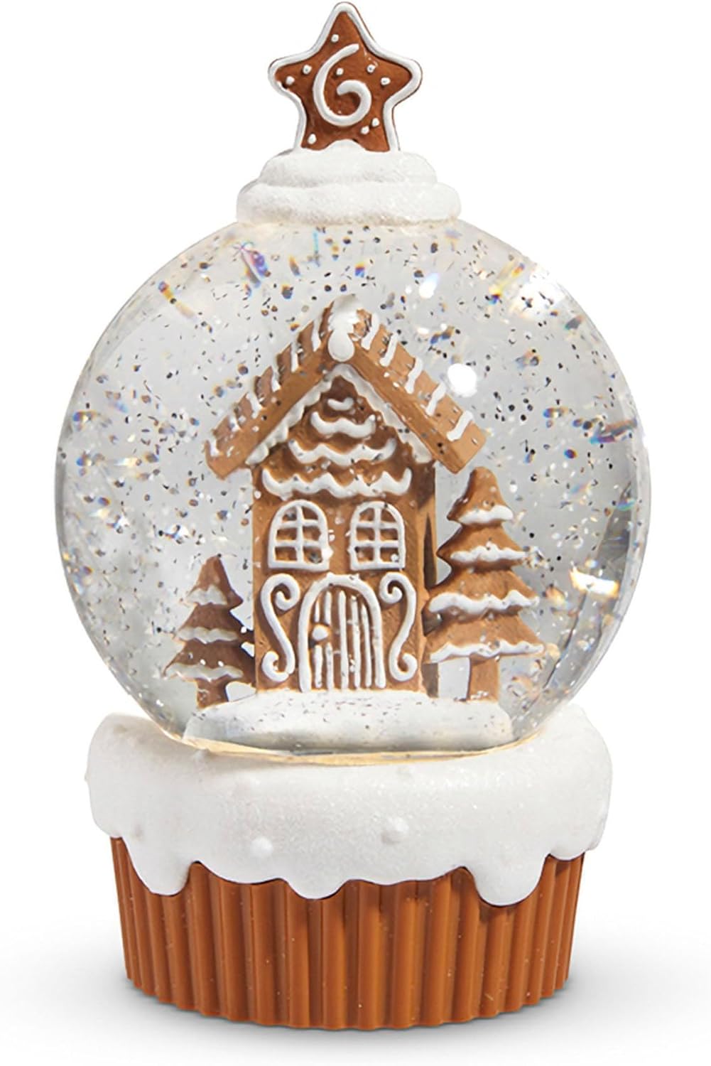 7.75" Lighted Gingerbread Village Cupcake with Swirling Glitter