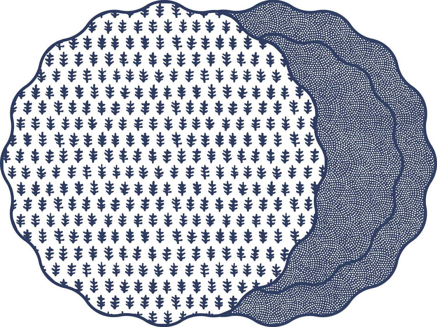 Our scallop two sided placemats has a 15 inch diameter. They have a matte finish protective coating so they just wipe clean. Perfect for everyday and something special!