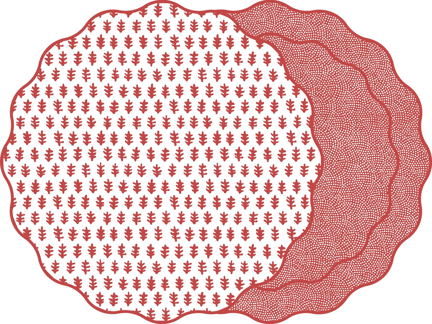 Our scallop two sided placemats has a 15 inch diameter. They have a matte finish protective coating so they just wipe clean. Perfect for everyday and something special!
