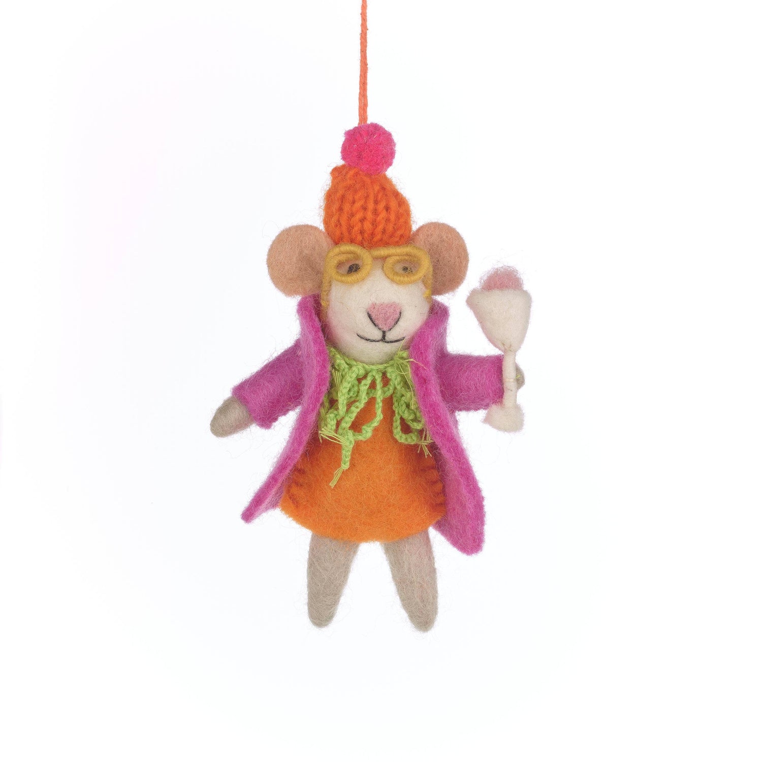 Handmade Felt Margie the Merry Mouse Christmas Decoration