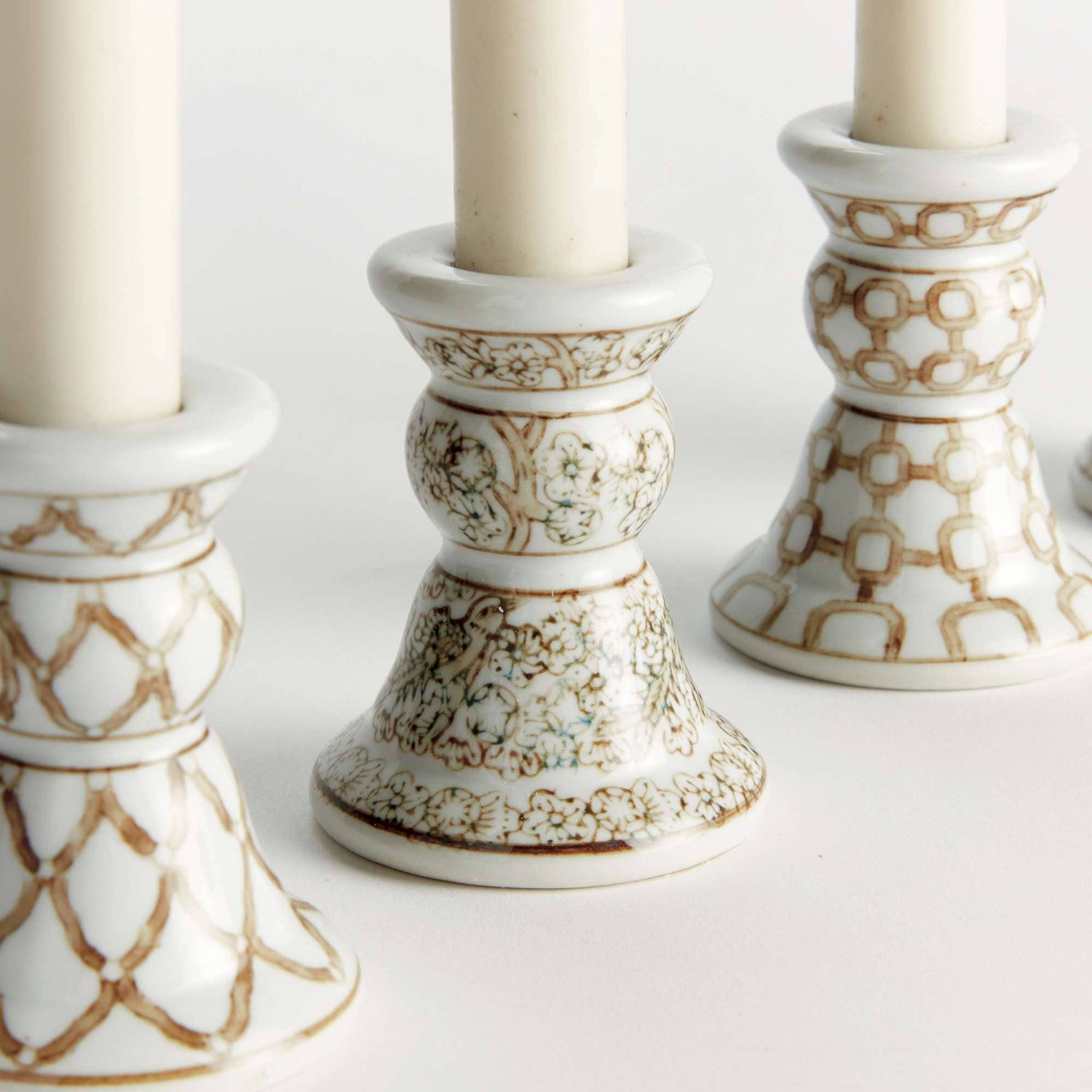 Crafted with precision and artistry, the Province Mini Taper Holders embody the elegance of classic chinoiserie in a sophisticated taupe and white palette. Each piece is handcrafted by skilled artisans, ensuring that every holder is unique and imbued with character. The high-fired porcelain not only showcases a refined finish but also features a practical drain hole, making it ideal for both traditional and contemporary settings.