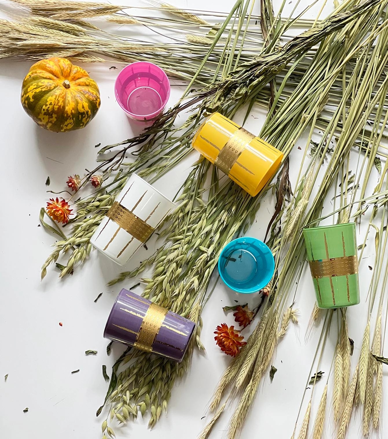 Adorn your table with this set of Moroccan tea glasses in 6 assorted colors and fun gold design.