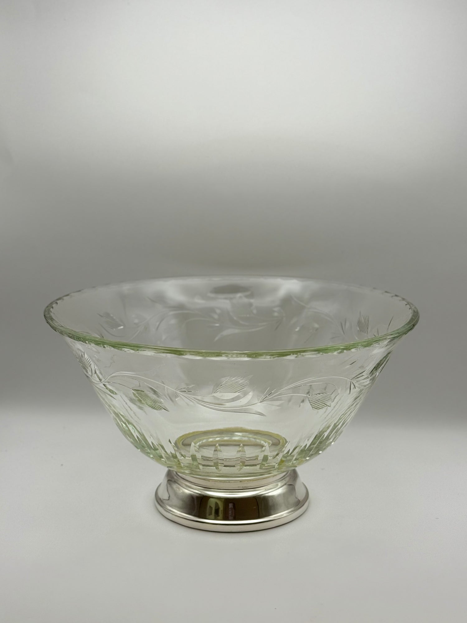 Vintage Large 10" Cut Crystal Bowl w/ Sterling Base